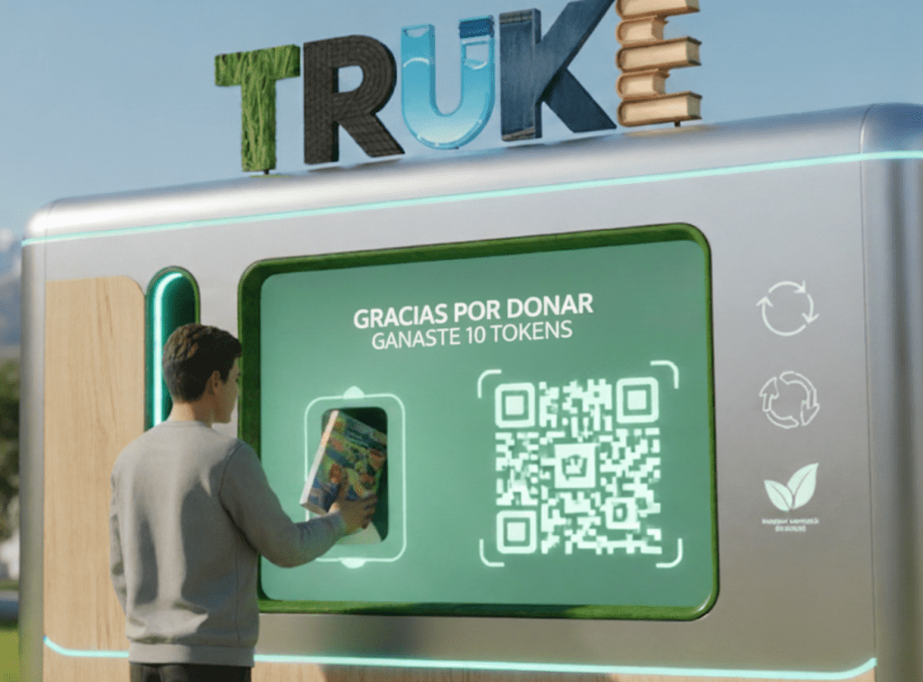 BOTELLAS DE AMOR, LIBROS, ROPA DE SEGUNDA MANO, DESDE LA APP (proceso) HASTA EL CONTENEDOR (render del proyecto)